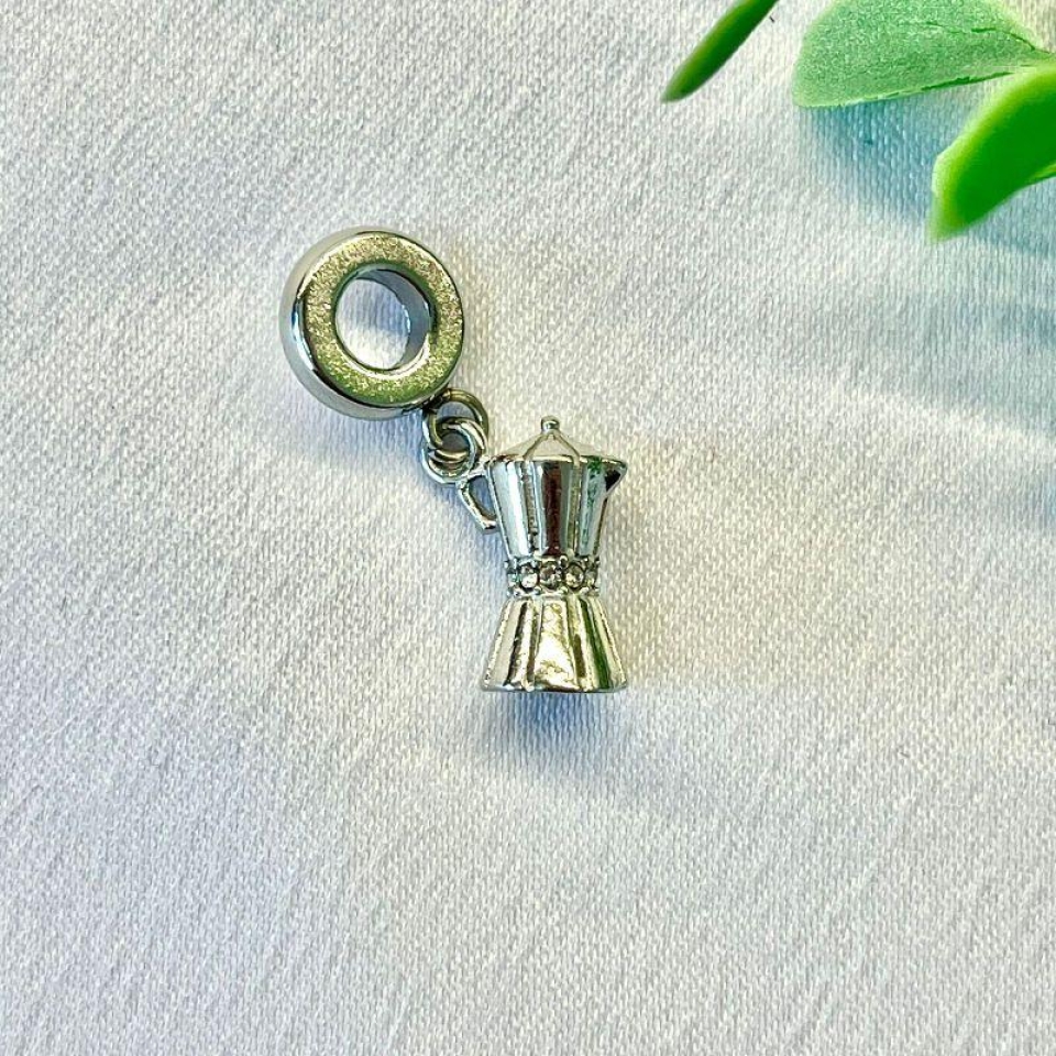 Berloque Penduricalho Cafeteira com Detalhe Cravejado Cristal: Um charme para os amantes de café, este berloque traz o formato de uma cafeteira com detalhe cravejado em cristal, unindo brilho e delicadeza. Feito em aço inox de alta qualidade, é o toque especial que faltava na sua pulseira.