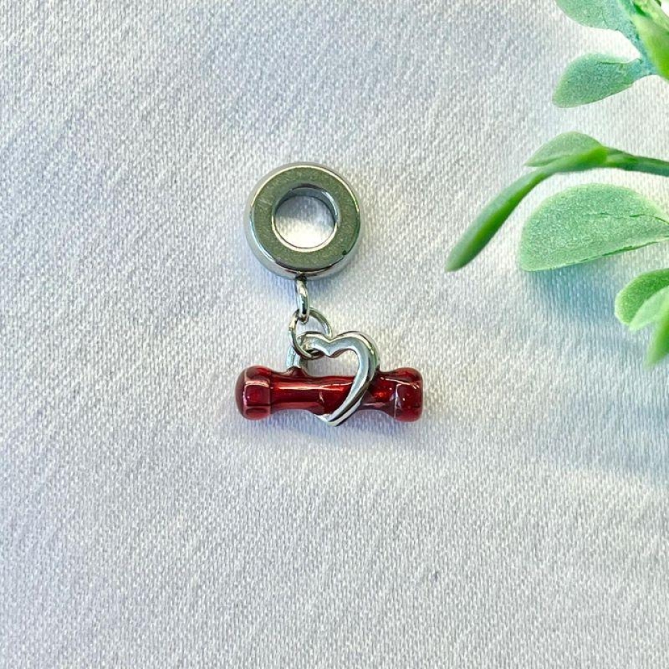 Berloque Penduricalho Coração com Halter: Para quem treina com o coração e vive o amor pelo movimento, este berloque une força e sentimento em um só símbolo. Feito em aço inox de alta qualidade, representa a paixão pelo fitness e a determinação de quem transforma esforço em estilo.