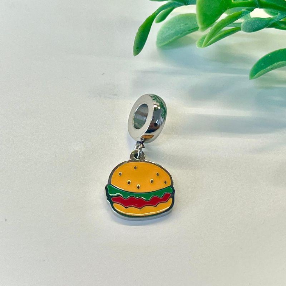 Berloque Penduricalho de Hambúrguer: Feito em aço inox, um toque divertido e cheio de personalidade para sua pulseira! Perfeito para os amantes de um clássico sabor que nunca sai de moda, trazendo estilo e diversão em cada detalhe.