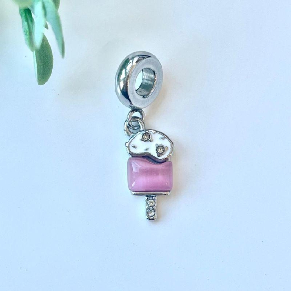 Berloque Penduricalho Sorvete Cravejado Cristal em Aço Inox: Doce e brilhante, este berloque em formato de sorvete cravejado com cristais traz um toque divertido e sofisticado para suas joias. Perfeito para quem adora detalhes que unem charme e personalidade com estilo.