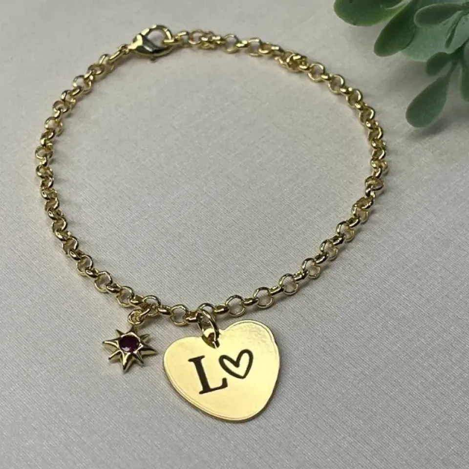 Esta Pulseira Personalizada é uma peça delicada e cheia de significado. Com pingente de coração, você pode adicionar uma inicial e escolher entre diversos adornos: coração, sol, coroa, borboleta ou Nossa Senhora, para dar um toque ainda mais especial. Banho de ouro 18K e verniz hipoalergênico garantem brilho, durabilidade e conforto. Uma pulseira elegante, ideal para presentear ou para carregar um símbolo de afeto e proteção com muito estilo.